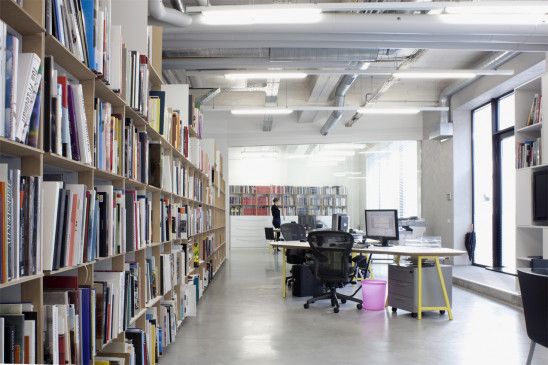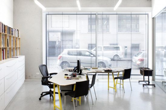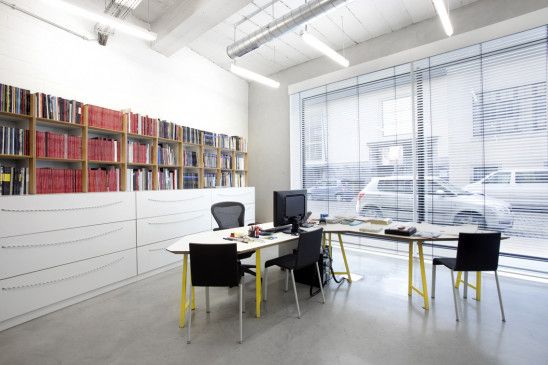 Ensuite une attention précise a été accordée aux diverses ambiances et le projet joue en quelque sorte cet « ad hocisme » qui conduit par exemple à ce que le mobilier des bureaux (trolley rose ou cuisine déstructurées), de l'accueil (grand continuum blanc fluide, ou encore du bar (grand ensemble quasi typographique) soit si varié. De même un mur en brique, un sol en ciment ... peuvent être conservé tel quel ou peint ou enduit selon le contexte.
