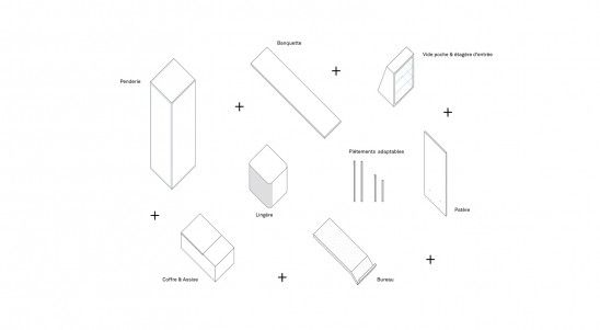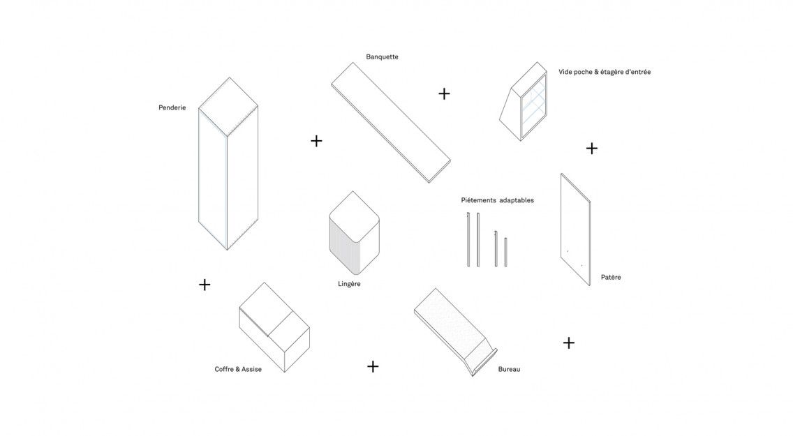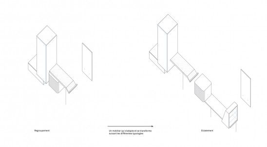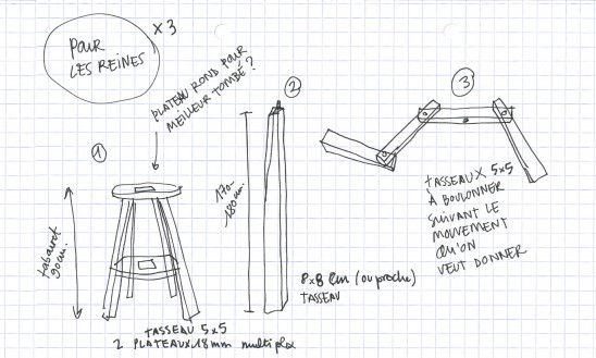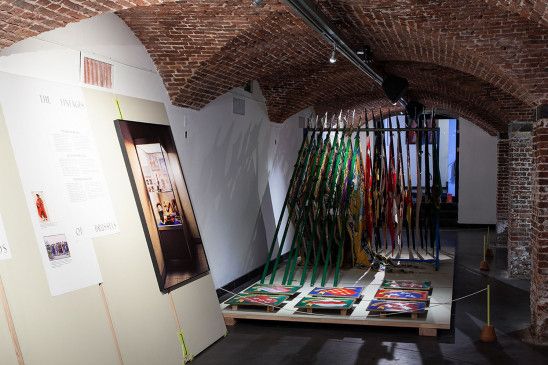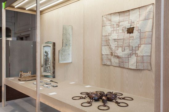 La scénographie se veut elle, élémentaire, presque brutale. A la fois pour trancher avec les fioritures, couleurs, matières, des costumes et autres artefacts, et à la fois dans un souci de rapidité (fabrication, montage), de modularité et de réemploi. Car l'exposition est destinée à être remontée à plusieurs reprises dans des lieux et contextes différents.