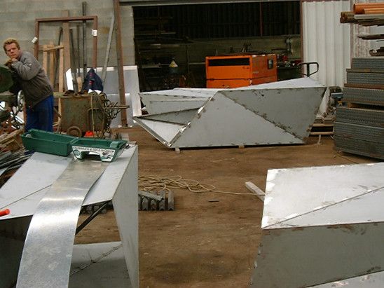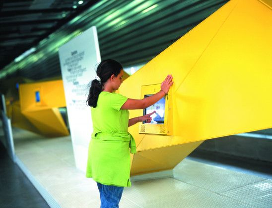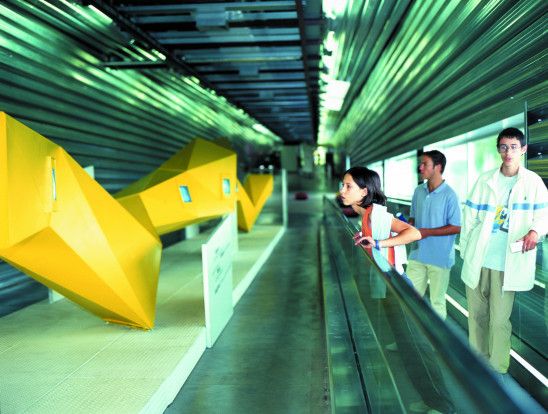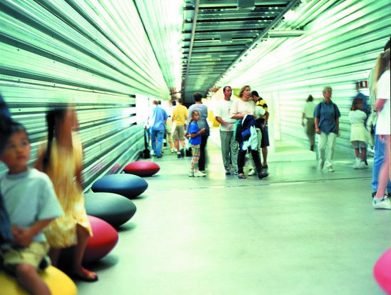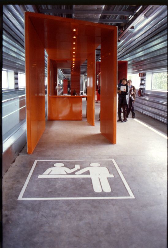 Afin de compléter ces interventions, les tableaux de Vincent Meessen situés dans l’espace principal ont été élaborés pour réguler les circulations et cadrer les vues du pavillon. Le système de signalétique, quant à lui, sort de son rôle purement informatif en envahissant le pavillon. Le système entier agit en tant que canevas pour les oeuvres d’art, leur procurant en même temps un écho aux couleurs utilisées par Guy Debord issu du mouvement des situationniste international.