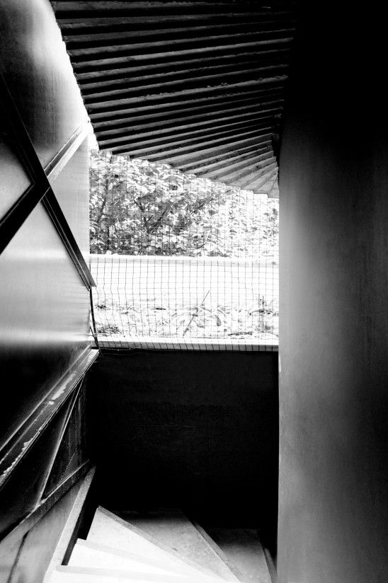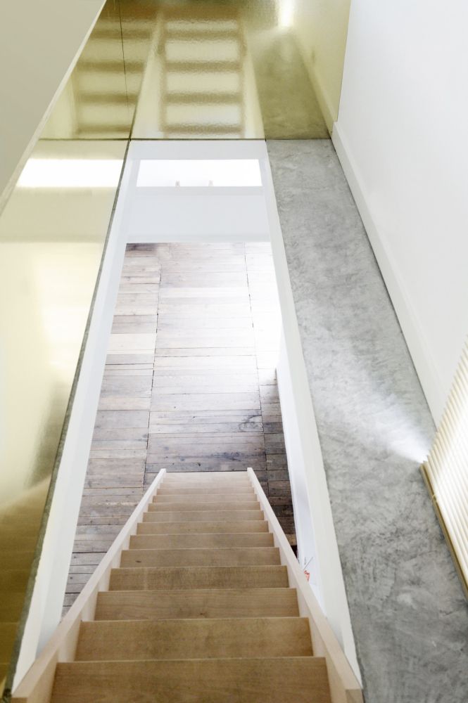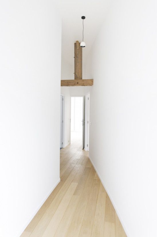The difficulty was to bring naturel light inside this long construction with blind party walls. That's why there is a rupture in the middle of the building wich was litteraly cut to create a three levels patio all around the existing staircase.