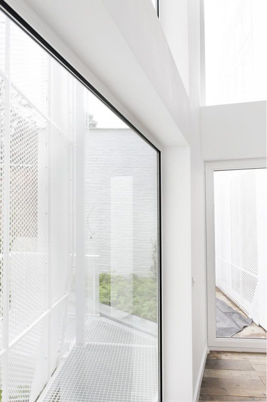 The second challenge was to deal with the direct views to the neighboring properties. It was therefore necessary to protect the back facade with a white perforated metal sheet. By giving it a slight movement terraces have been created.