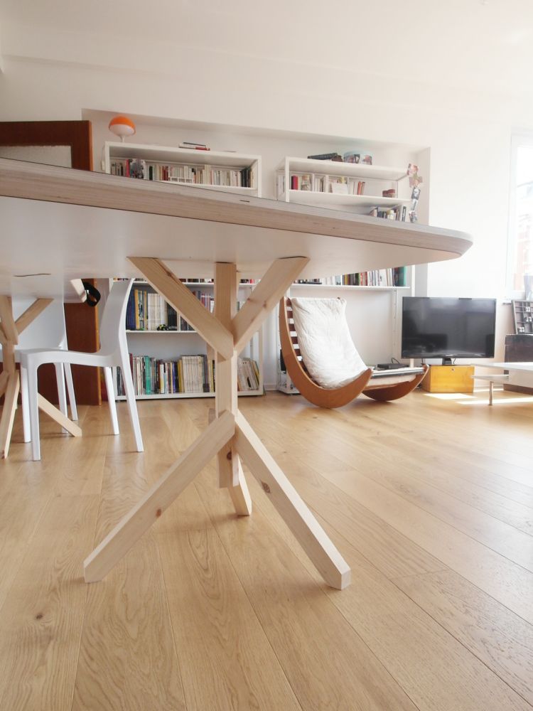Le premier étage quand à lui suit les virages de la circulation et joue avec les structures d’acier existantes.