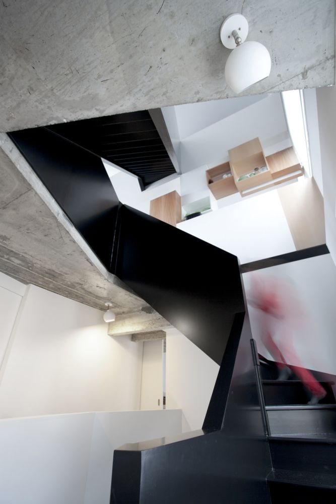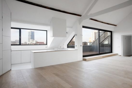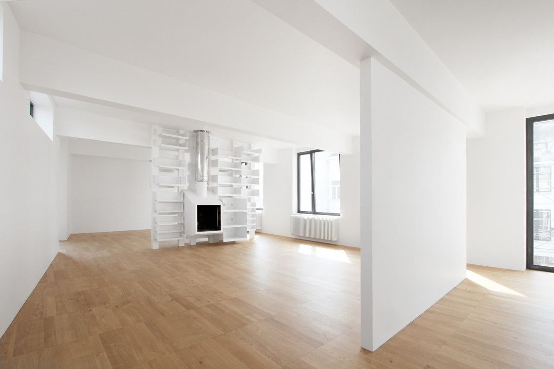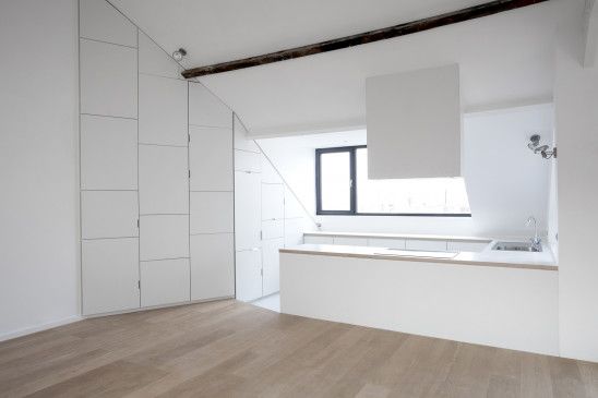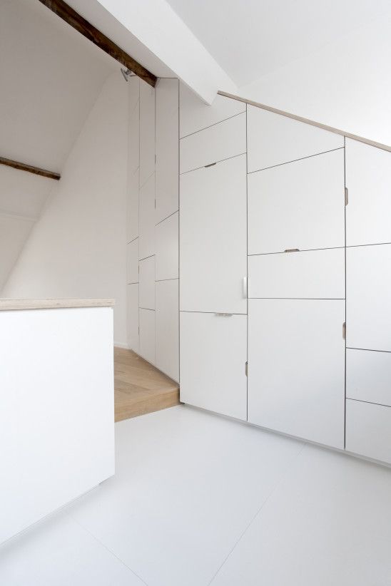 Cet appartement remplace plusieurs petites chambres de bonnes situées sous les toits. En ouvrant l’espace, les vues intérieures et extérieures deviennent plus intéressantes, le lieu devient plus lumineux et fonctionnel.